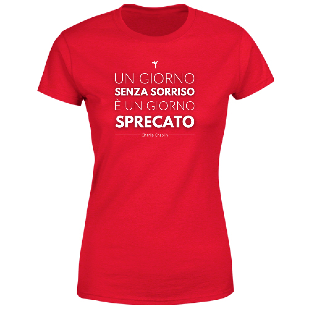 Maglietta da Donna: La maglietta da donna, con cuciture laterali e punto vita sfiancato, è realizzata in cotone filato ad anelli da 155 g/m². Caratterizzata da un girocollo con bordo a costina e nastro di rinforzo, è disponibile in nero e rosso. La citazione di Chaplin è stampata con tecnologia DTG, garantendo una risoluzione elevata. Lavare a caldo (max 30°C), evitare l'uso di candeggina con cloro, non lavare a secco e stirare al rovescio. Asciugare in asciugatrice a bassa o media temperatura.