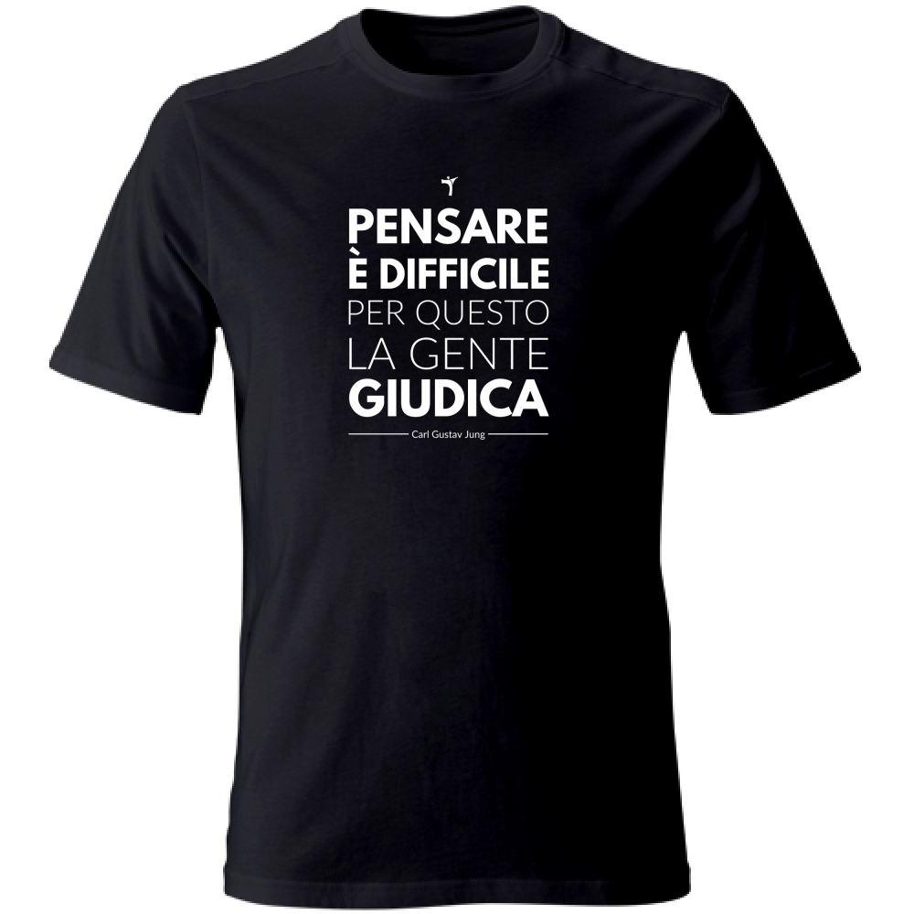 La frase di Carl Jung, “Pensare è difficile, per questo la gente giudica”, si fa portavoce di un messaggio potente e attuale, esaltato da un design minimalista.