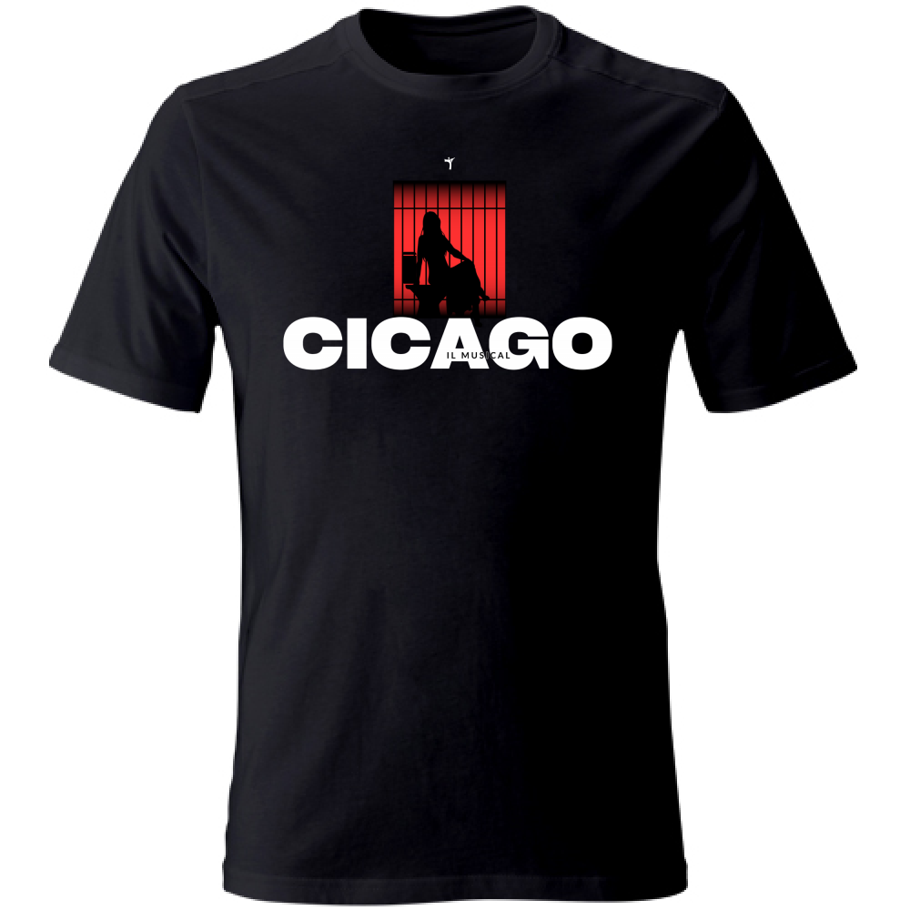 La grafica "Cicago" è una divertente parodia del celebre musical "Chicago". Trasformando il titolo in "Cicago", il design si distacca con ironia dall'originale e presenta una silhouette comica di una ragazza seduta su un water, al posto delle iconiche spogliarelliste del musical.
