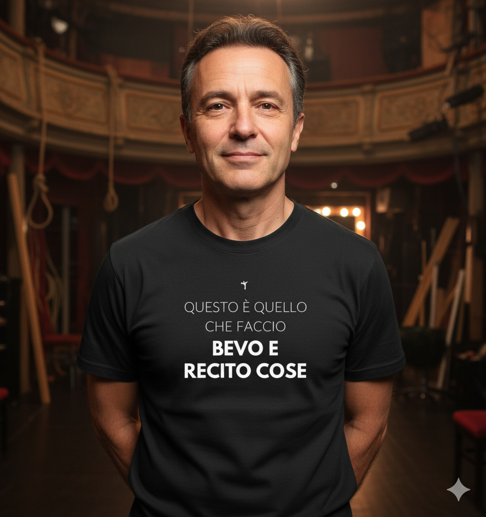 Questa grafica cattura lo spirito degli attori che, tra prove e performance, trovano tempo per divertirsi e godere della compagnia. Ironica e spavalda, la frase celebra l’equilibrio tra serietà e leggerezza, perfetta per chi sa che il teatro è fatto anche di momenti conviviali e risate. Un messaggio perfetto per indossare con orgoglio la propria passione per la recitazione, senza prendersi troppo sul serio.